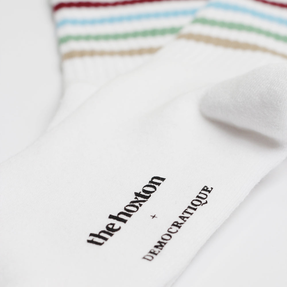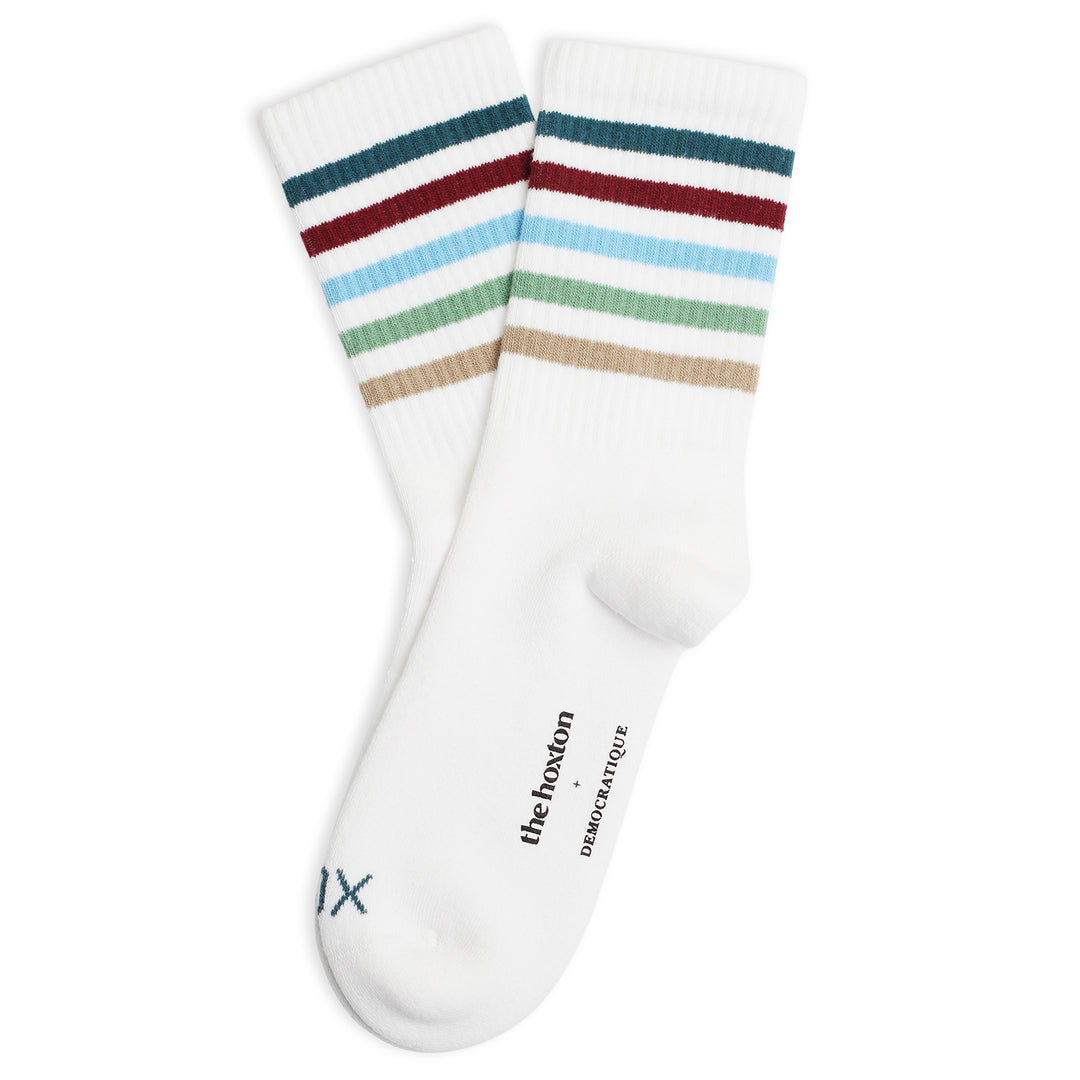 THE HOXTON X DEMOCRATIQUE SOCKS ATHLETIQUE CLASSIQUE HOX SOX MULTISTRIPE Organic Cotton Clear White / Bluish Green / Red Wine / Soft Green / Palm Springs Blue / Off White