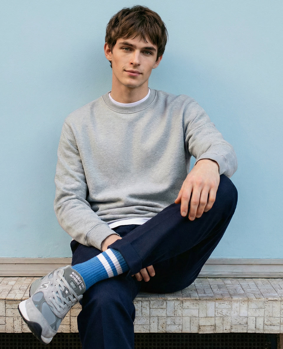 Step up your style and comfort with Originals Fine Rib Luxury Ribbed Socks—where eco-friendly design meets premium performance. Expertly crafted from 100% organic cotton and knit with a 200-needle construction, these ribbed socks feature delicate thin-stripe accents for a refined, modern look. The hand-linked toe seam ensures a friction-free fit, while reinforced arch support and a cushioned sole deliver all-day stability and relief.