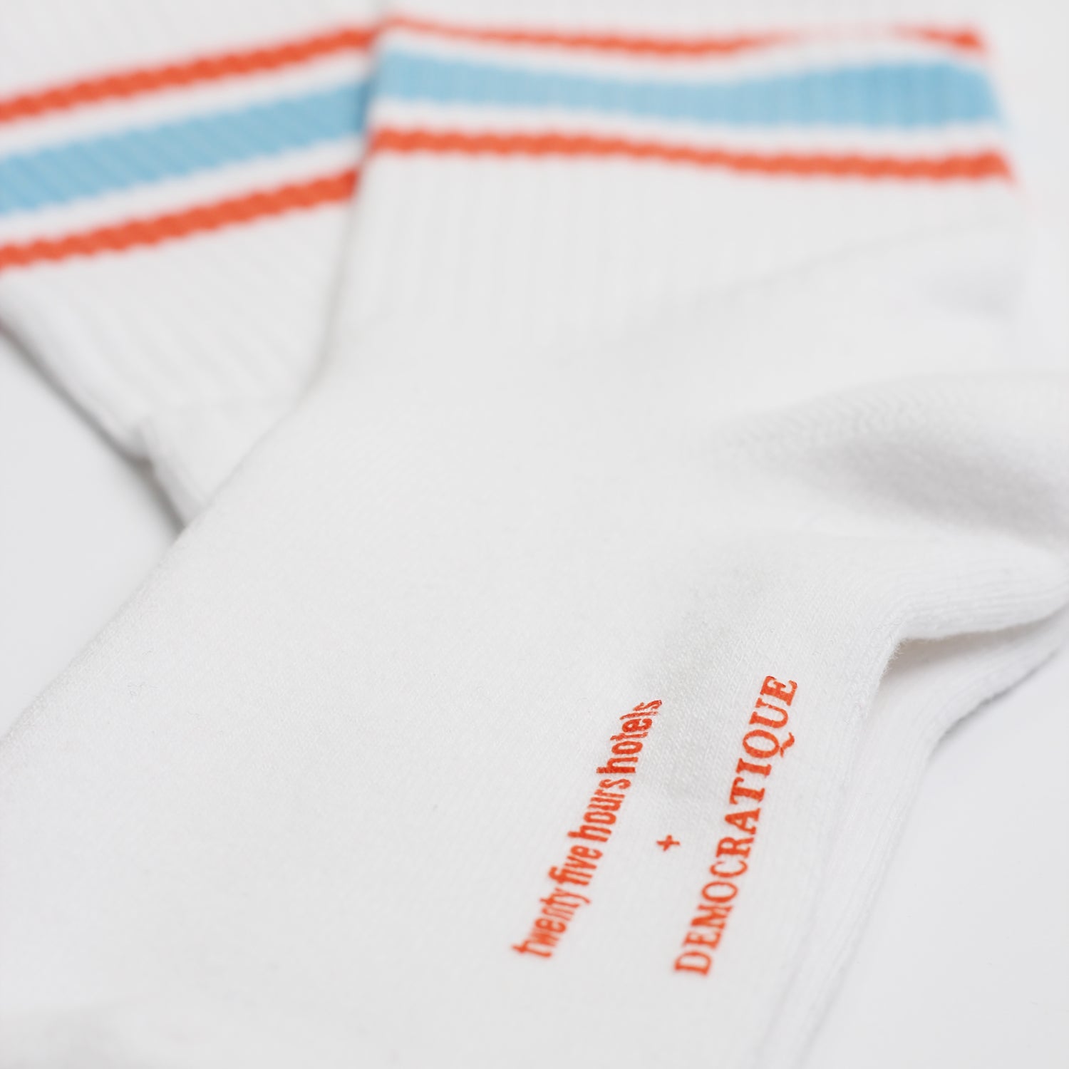 25hours Hotels x Democratique Socks – Stribede tennissokker i økologisk bomuld