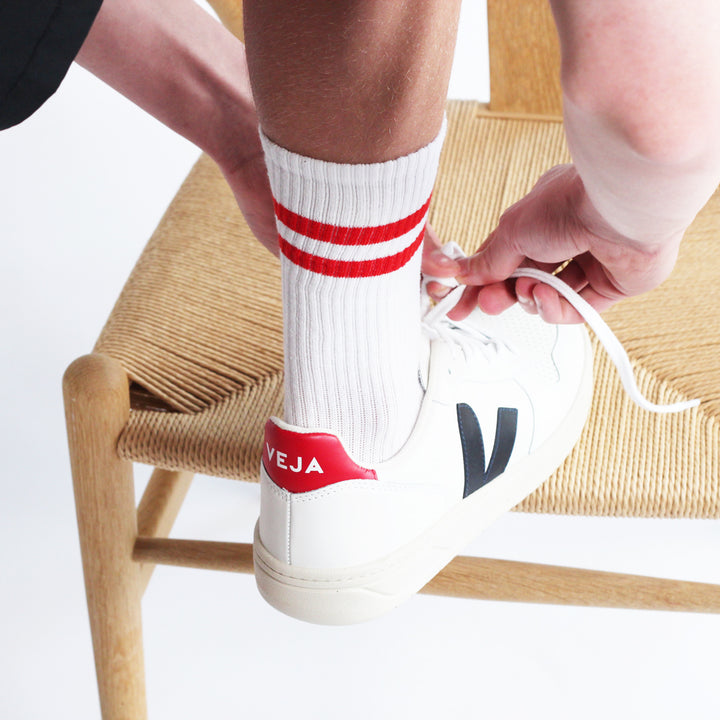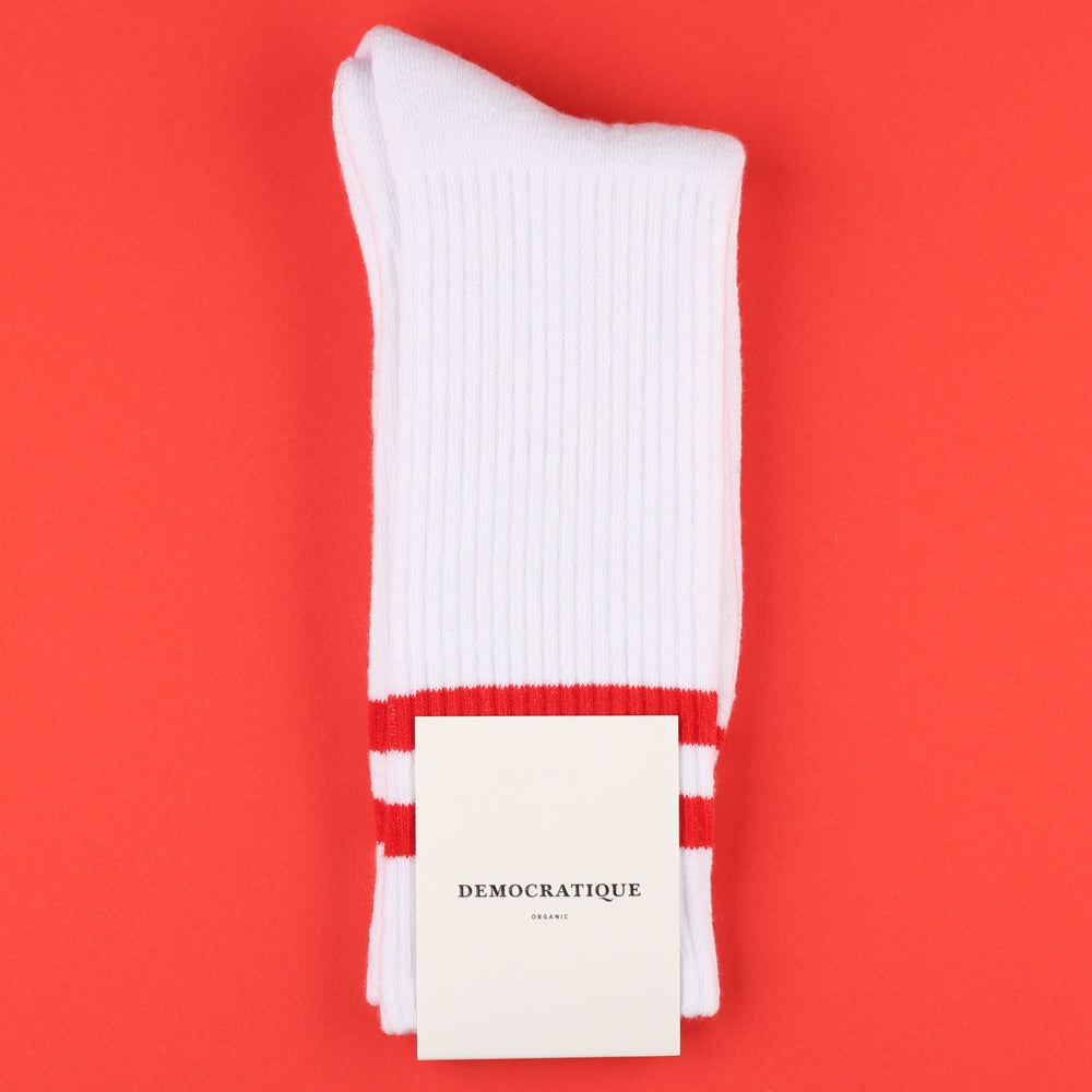 Køb disse klassiske hvide og stribede sneaker sokker fra Democratique Socks, og du vil være en del af udviklingen af vores Athletique Classique kollektion. Vores Athletique Classique er en populær sok sommer og vinter.