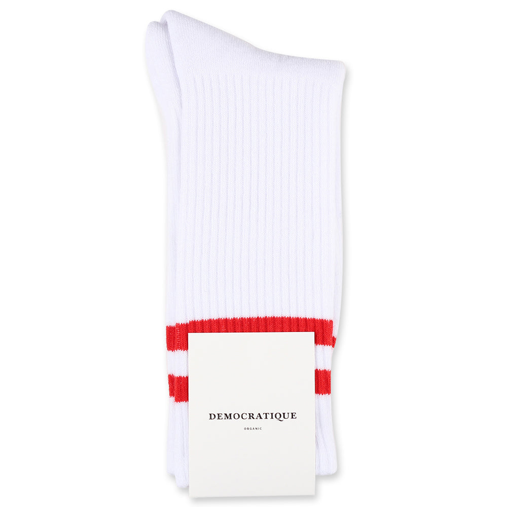 Endnu en Democratique Socks klassisk hvid og stribet sneakersok.