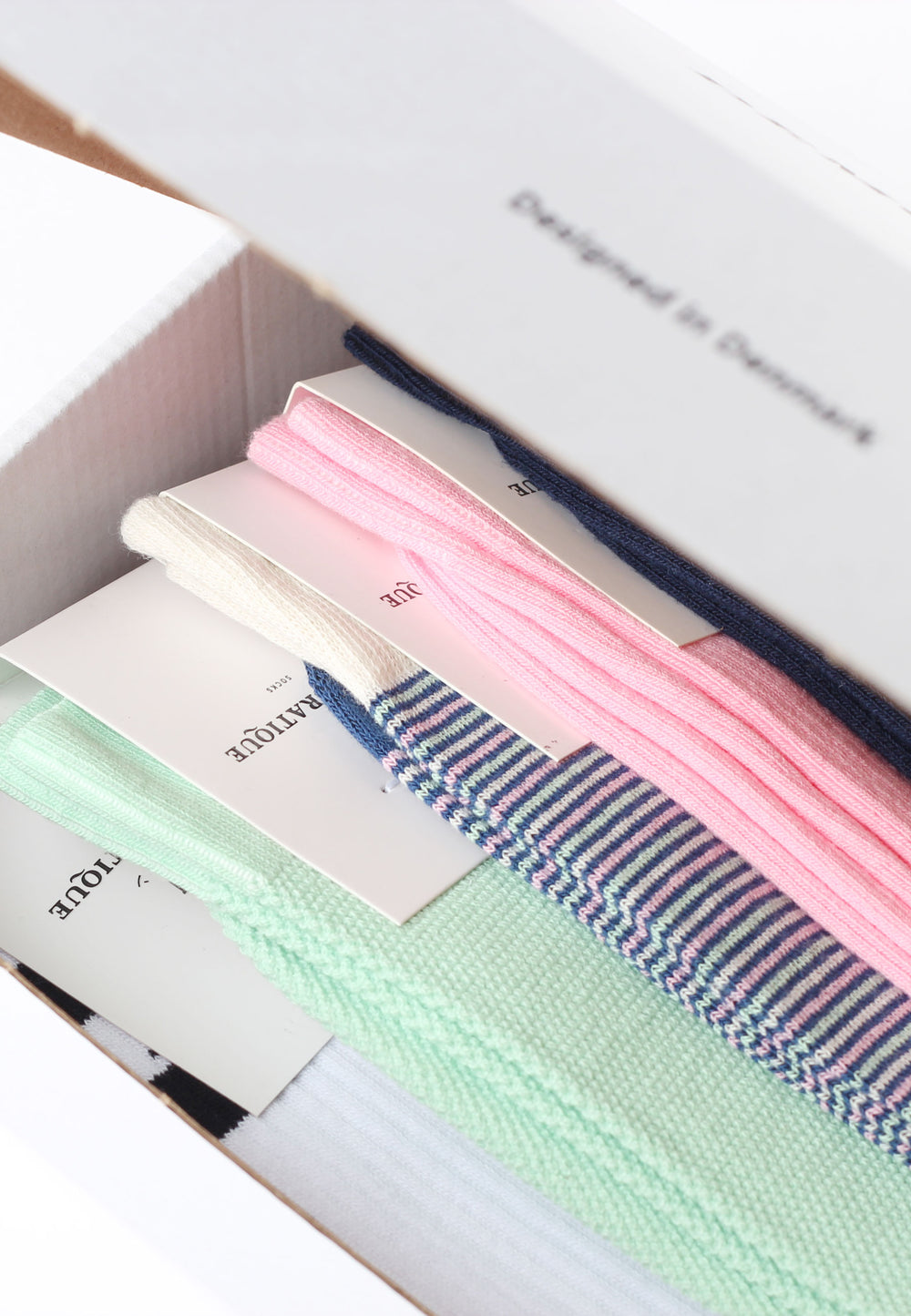 We have created a limited edition Spring/Summer Box filled with our best selling styles. Then you dont have to think about anything - we´ve made the selection. High quality organic combed cotton as well as handlinked toe.