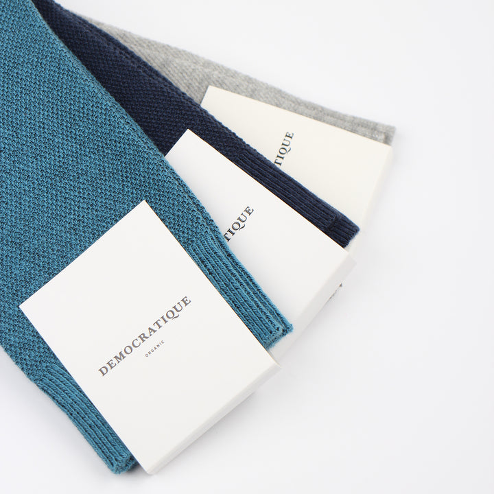 Democratique Socks Pique Solid Color 3-packs - Navy, Grey and Petroleum