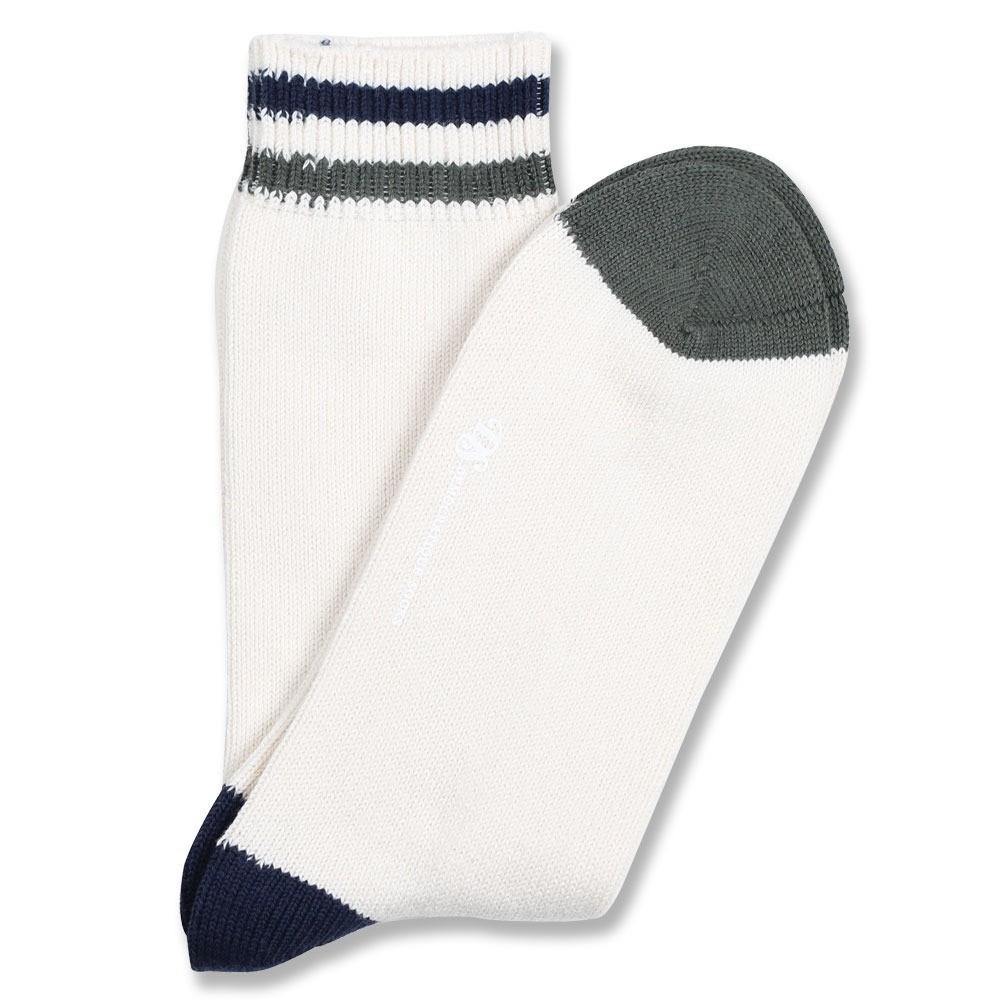 Democratique Socks Relax Two Stripe Broken White/Navy/Army