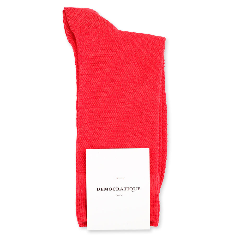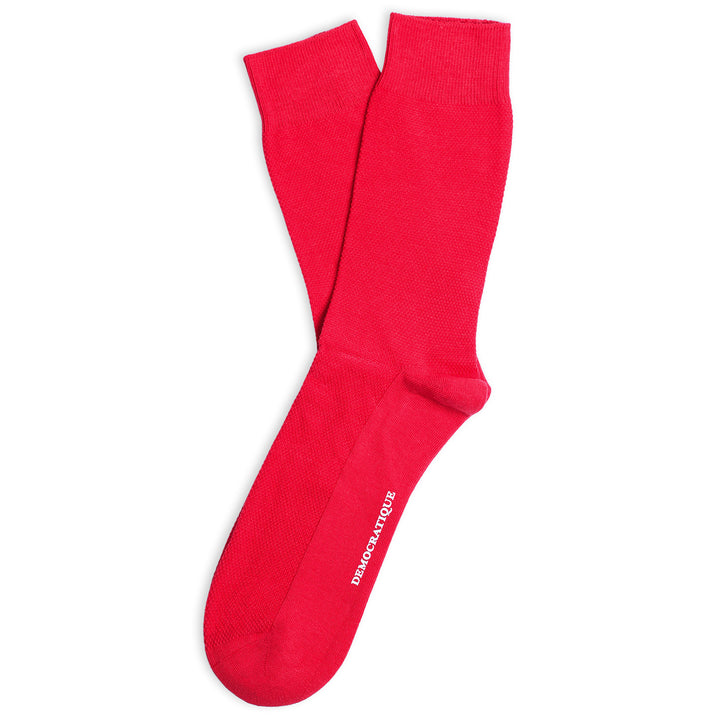 Køb de populære røde sokker fra Democratique Socks, og brug dem med stolthed. Glæden kommer med sikkerhed, når du mærker kvaliteten og håndværket. Del gerne dine daglige billeder med sokker på Instagram og tag os med @democratiquesocks og #democratiquesocks. Det vil være et 100% like fra os.