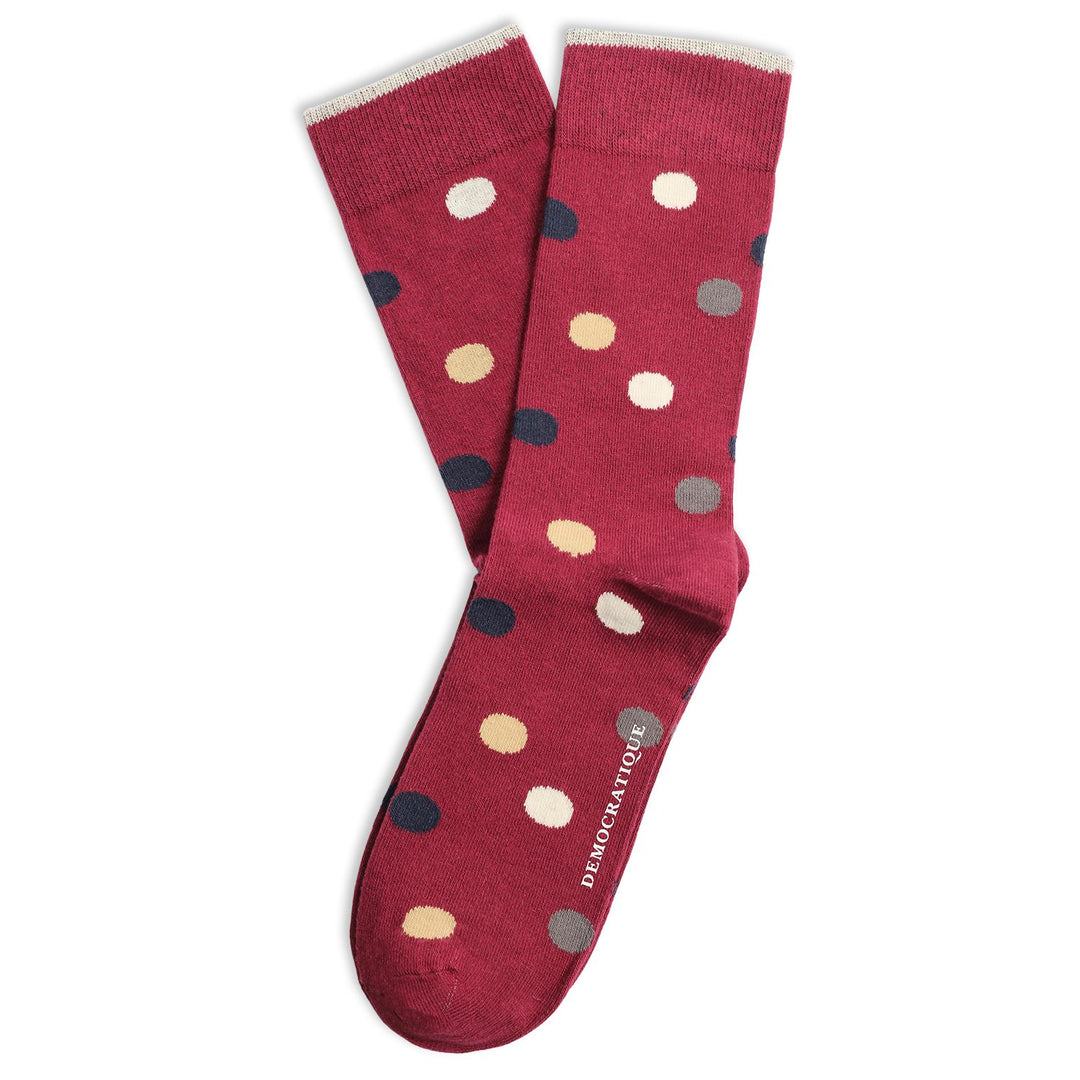 Buy these classic Red Wine / Casual Sand / Navy / Warm Grey / Off White dotted socks from Democratique Socks and wear them with pride. The joy will come for sure when you feel the quality and craftsmanship. Please share your everyday sock pictures on Instagram and tag us with @democratiquesocks and #democratiquesocks. That will be a 100% like from us.