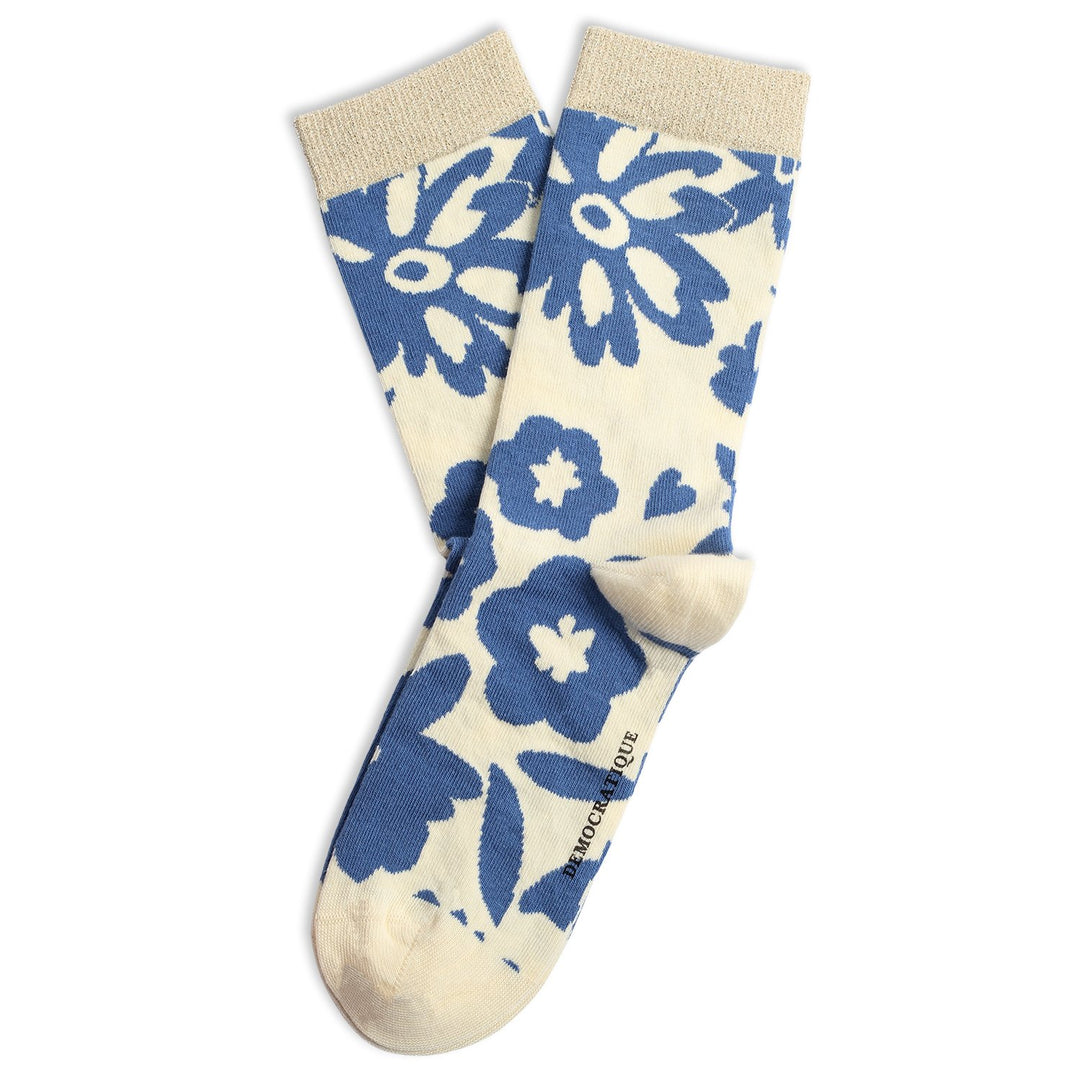Elevate your sock game with the pinnacle of opulence and sophistication – introducing Originals Femme Fleur Socks in Off White/Cold Blue/"Gold" with exclusive flower and heart graphics by Democratique Socks. Crafted from organic cotton, these socks not only prioritize your comfort but also contribute to a sustainable future. Immerse yourself in the luxurious texture against your skin and step into a world of timeless elegance and refined aesthetics. Let Democratique Socks for women revolutionize your perspective on fashion, functionality, and eco-conscious choices, where every intricate detail speaks volumes about your commitment to style and sustainability. Experience the epitome of refinement with Democratique's Originals Femme Fleur Socks.