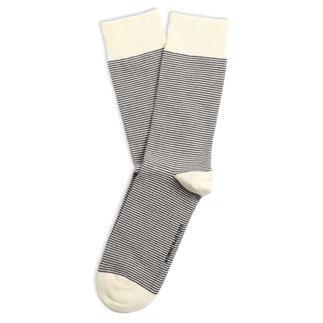 Upgrade your sock game with our Originals Ultralight Stripes Socks in Off White/Charcoal. Experience the classic style with a twist as these finely crafted striped socks add a touch of elegance to your outfit. Share your everyday looks with us on Instagram - tag us @democratiquesocks and use #democratiquesocks for a guaranteed 100% like. Join the exclusive club of those who appreciate quality and craftsmanship. Take your sock game to the next level with our Originals Ultralight Stripes Socks. These finely crafted socks feature classic style with a modern twist, elevating any outfit with a touch of elegance.