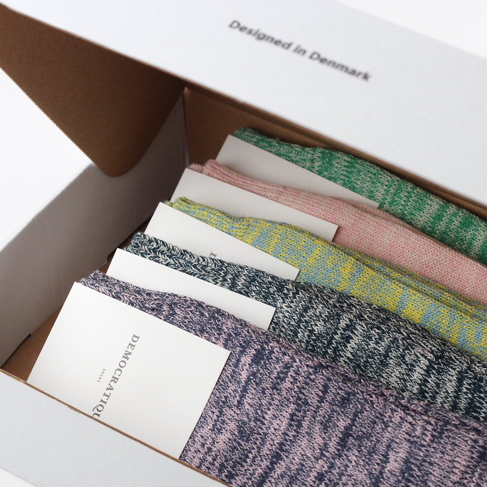 Køb disse klassiske melerede sokker fra Democratique Socks, og du vil være en del af udviklingen af vores Relax Chunky kollektion. Vores Relax Chunky Knit Supermelange er en populær sok sommer og vinter.