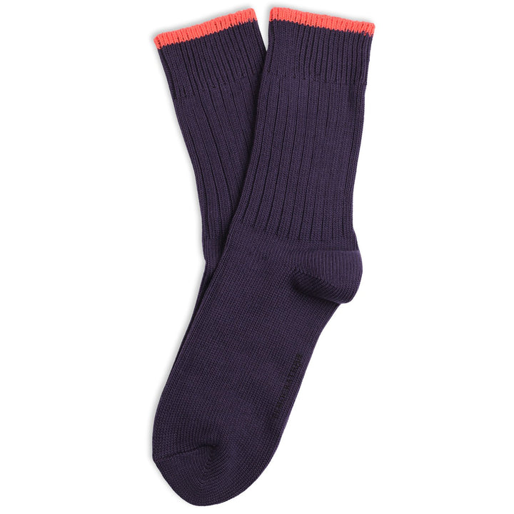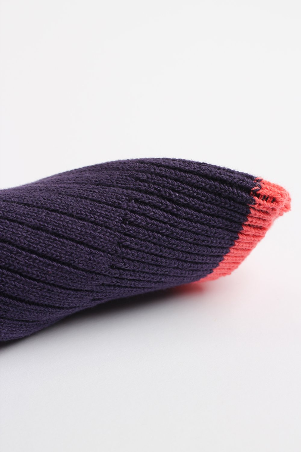 Experience the unparalleled texture and impeccable craftsmanship of Democratique Socks' Relax Chunky Rib style, adorned with high-quality knitting techniques and accent colors. Crafted to offer warmth during winter's chill yet light enough for year-round wear, these Gribskov Plum / Watermelon Supermelange socks, meticulously fashioned from organic cotton, exude opulent quality and refined elegance.