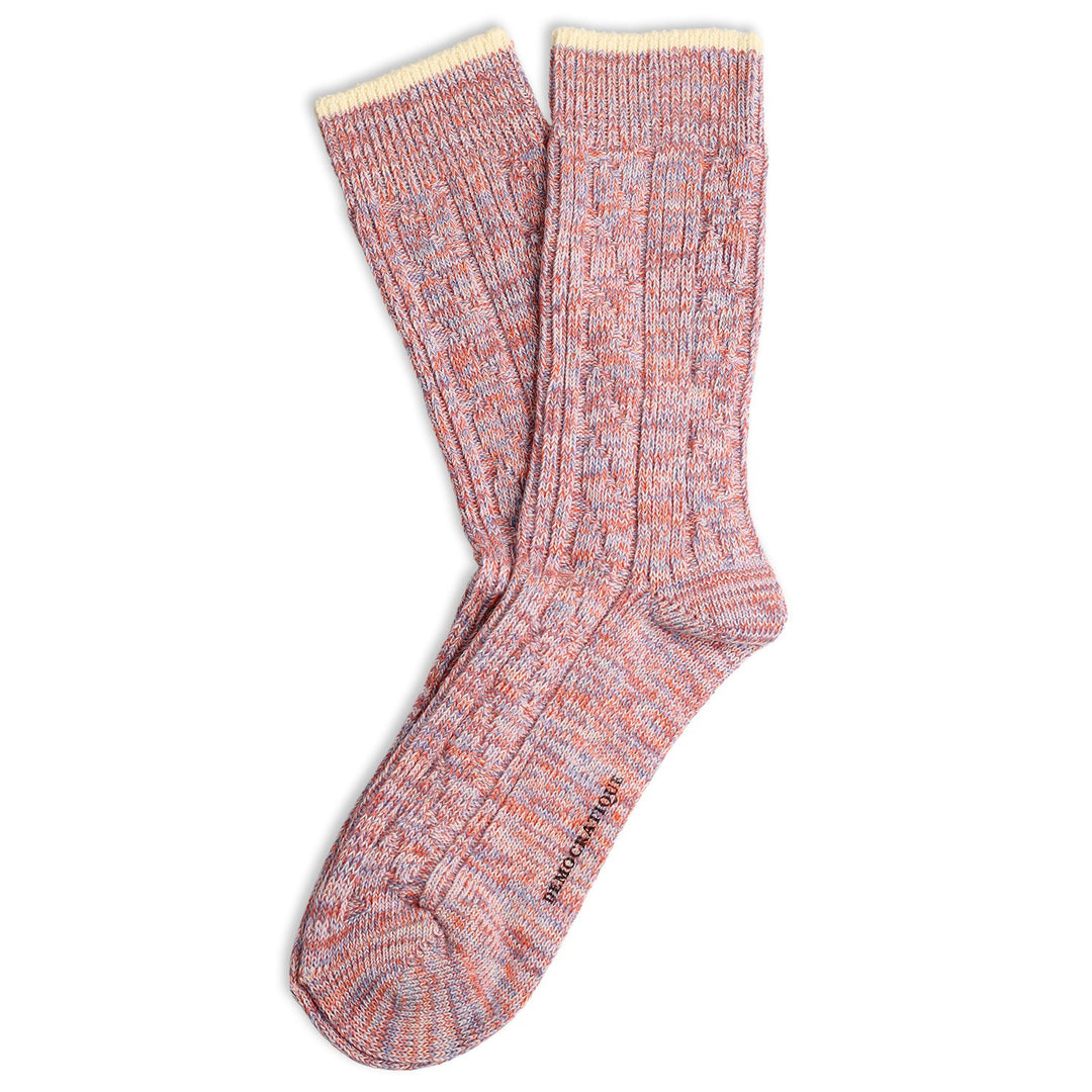 Elevate your sock game with Democratique Socks' Men's Cable Knit Socks, introducing a touch of classic sophistication to your wardrobe. Immerse your feet in the timeless charm of cable knit design, elegantly crafted in an Off White/Cold Blossom/Pumpkin/Hot Nutshell color palette. Made from premium organic cotton, these socks not only provide a soft and luxurious feel but also reflect a commitment to sustainable fashion. Step into the Ivy League realm of refined style and comfort, as these socks evoke a sense of collegiate elegance. Redefine your everyday essentials by elevating your sock collection with Democratique Socks for men, where the fusion of traditional craftsmanship, eco-friendly materials, and a soft, luxurious feel meets unparalleled style.