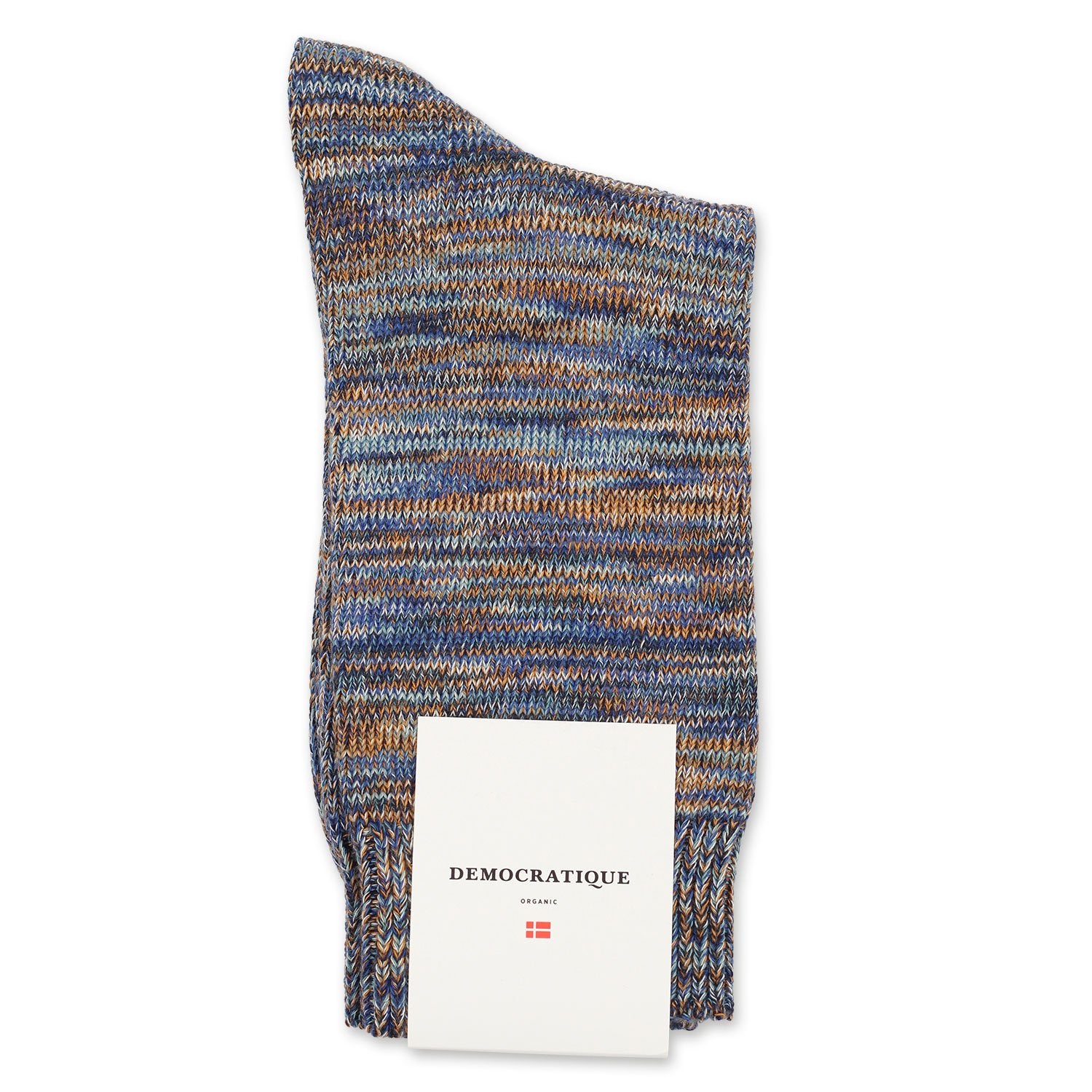 Democratique Socks Relax Chunky Flat Knit Supermelange Organic Cotton Irr / Honey / Cobalt Blue / Navy / Off White - Democratique Socks