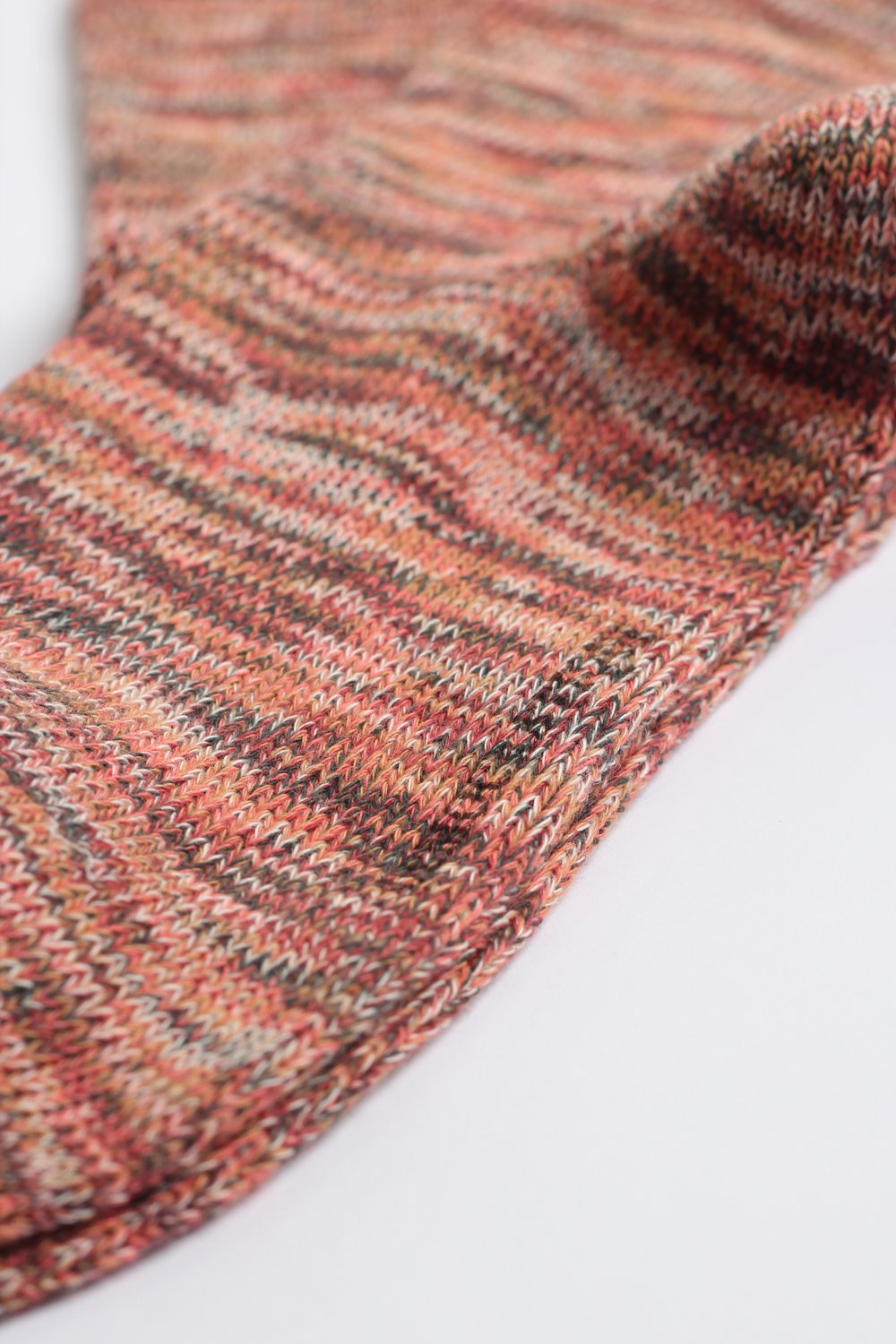 Indulge in the distinct texture and impeccable craftsmanship of Democratique Socks' Relax Chunky Flat-Knit style, featuring the same twisted yarn knitting found in the Relax Twister design. Perfect for winter's colder days yet lightweight for year-round comfort, these Folehaven Apricot / Dyrehaven Rust / Forrest Green / Off White / Watermelon twisted yarn Supermelange socks, meticulously crafted from organic cotton, exude luxurious quality and refined style.