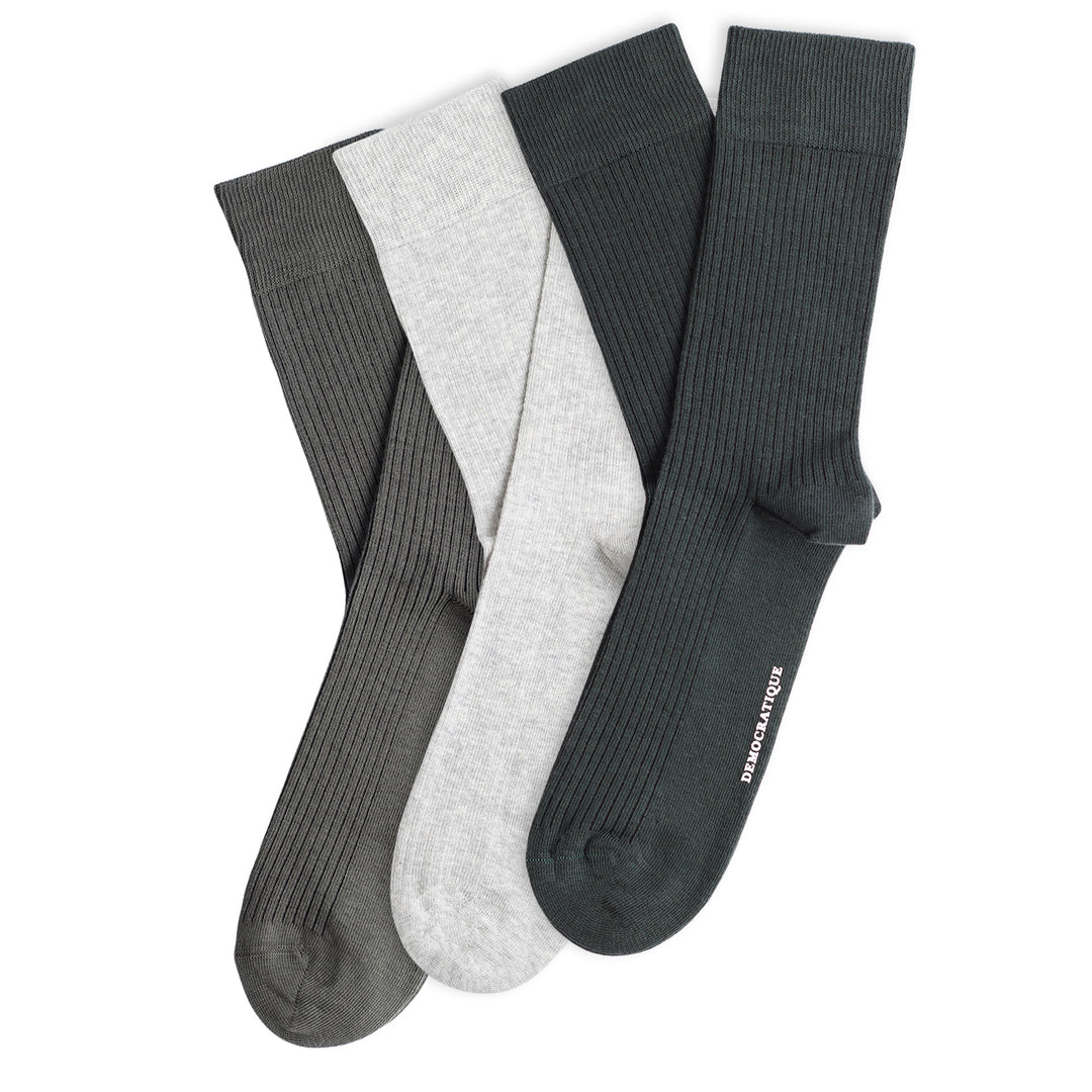3-pack Originals Fine Rib Socks Forest Green / Charcoal / Grey