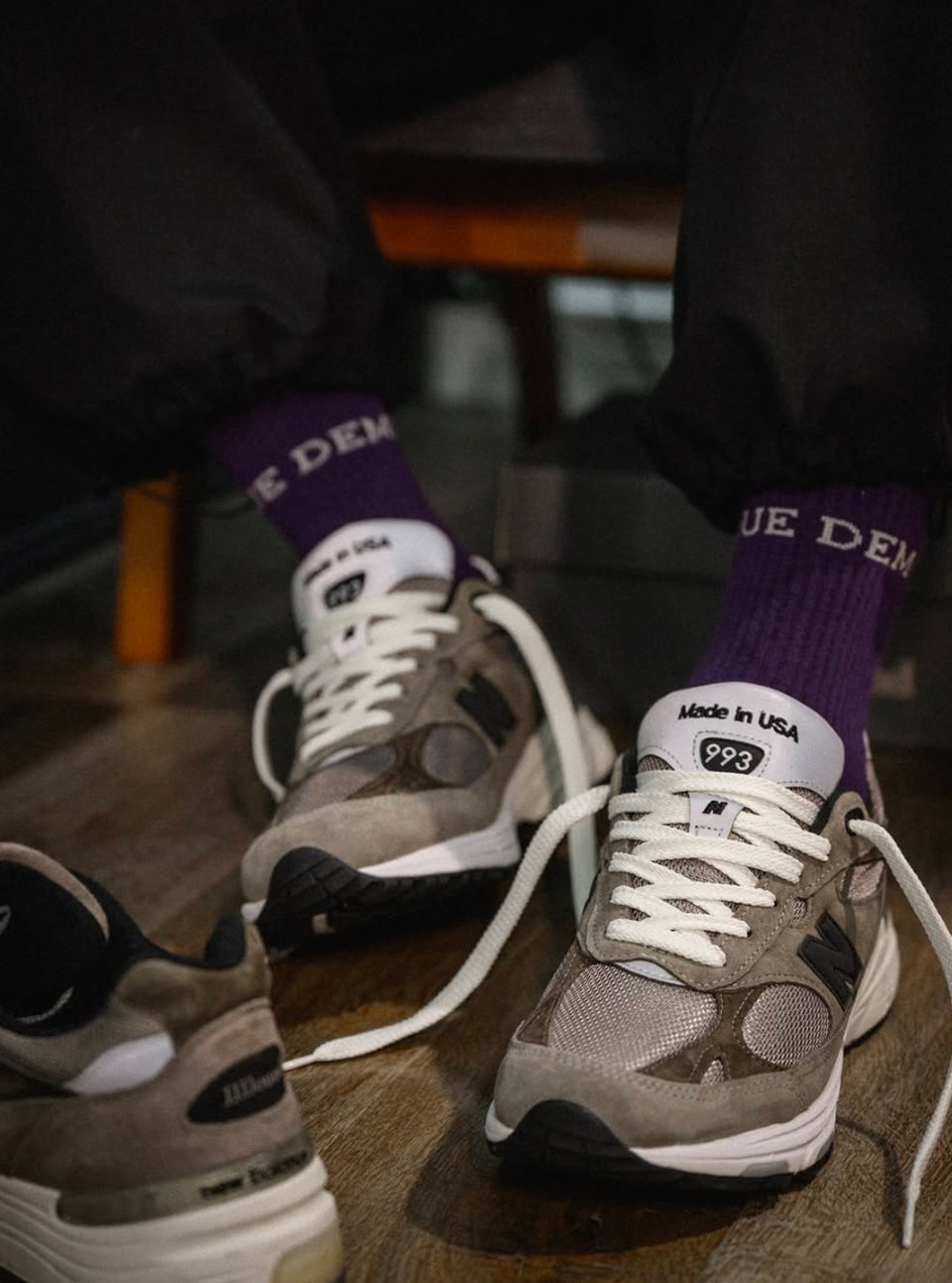 Notre ami @sit.sittichok à Bangkok, portant les dernières chaussettes en coton bio avec logo de @democratiquesocks — maintenant dans de nouvelles couleurs fraîches ! 🌈 Parfaitement assorties aux intemporels New Balance NB993 x @jjjjound, car un grand style repose sur les détails.