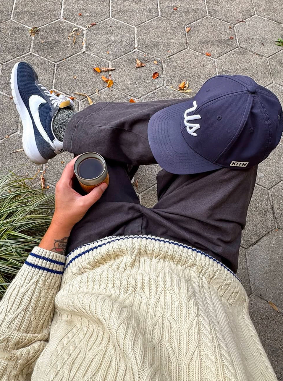 Des matins faciles, un style sans effort. ☕🧦 Notre ami Martin The Meat reste au frais dans les chaussettes mélangées biologiques de faible épaisseur de Democratique Socks, parfaitement associées à une casquette KITH, un pull tricoté torsadé et une tasse de café frais. Confort, qualité et ambiance décontractée toute la journée. 🌿✨