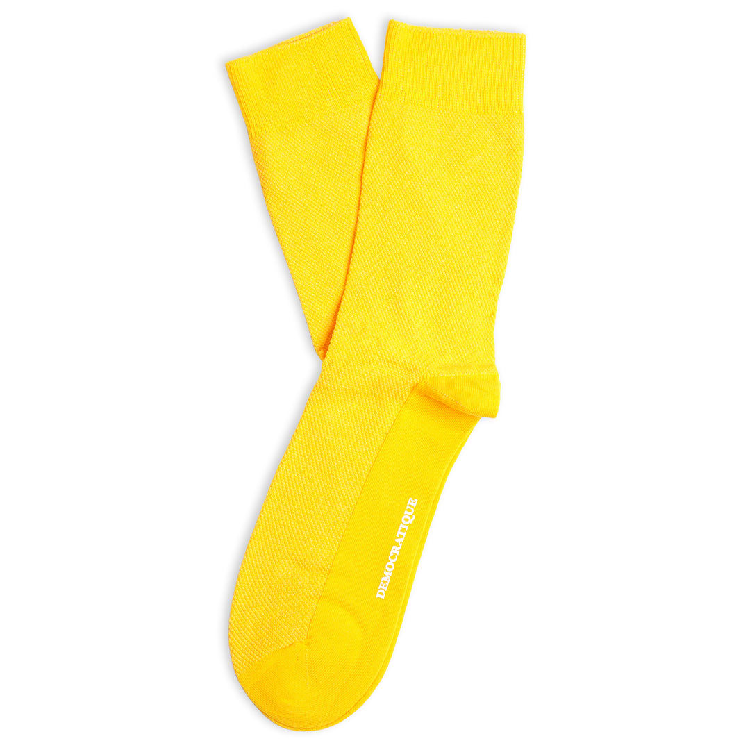 Yellow socks has been in the Democratique Socks collections since 2012. A wide range of melange socks, original flat knit socks as well as tube socks. High quality yellow socks from one of the best factories in the world. From 2021 we´re using organic cotton for a greener part at Democratique Socks.
