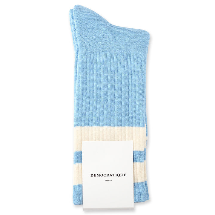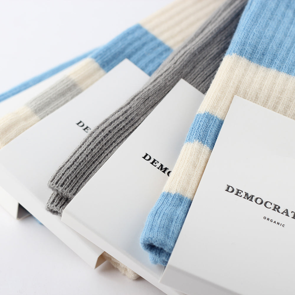 Buy these classic off white and lightblue crew socks from Democratique Socks and wear them with pride. The joy will come for sure when you feel the quality and craftsmanship. Please share your everyday sock pictures on Instagram and tag us with @democratiquesocks and #democratiquesocks. That will be a 100% like from us.
