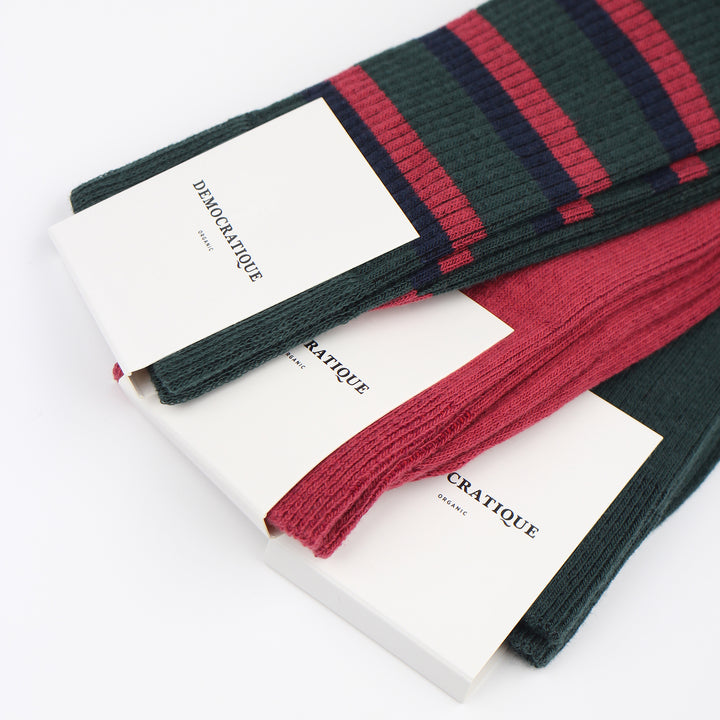 Democratique Socks Fine Rib 3-pack - Green, Bordeaux and Striped