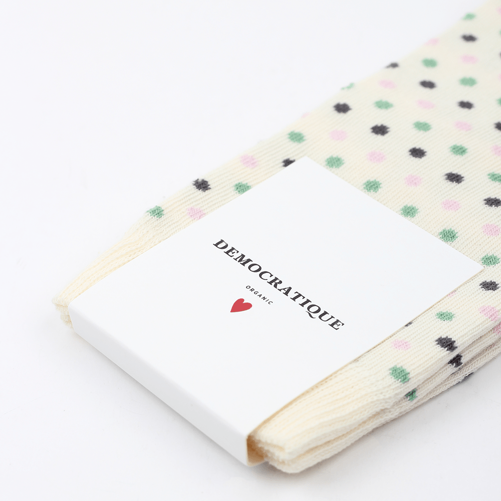 Experience the height of luxury and refinement with Originals Femme Polkadot Socks in Off White / Soft Green / Cold Blossom / Charcoal by Democratique Socks. Made with organic cotton, these socks prioritize your comfort and promote sustainability. Indulge in the cozy texture against your skin and enter a realm of timeless grace and sophisticated aesthetics. Allow Democratique Socks for women to redefine your concept of fashion, practicality, and environmentally-conscious decisions, where even the smallest details hold significance.