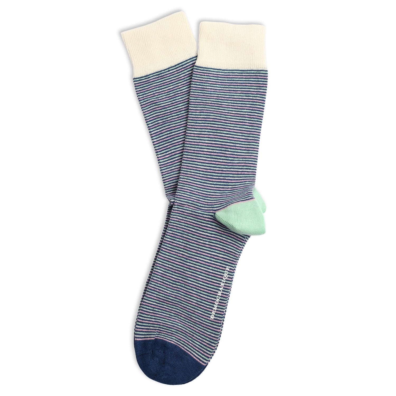 Get these classic navy blue, pink and white striped socks from Democratique Socks and wear them with pride. The joy will come for sure when you feel the quality and craftsmanship. Please share your everyday sock pictures on Instagram and tag us with @democratiquesocks and #democratiquesocks. That will be a 100% like from us.