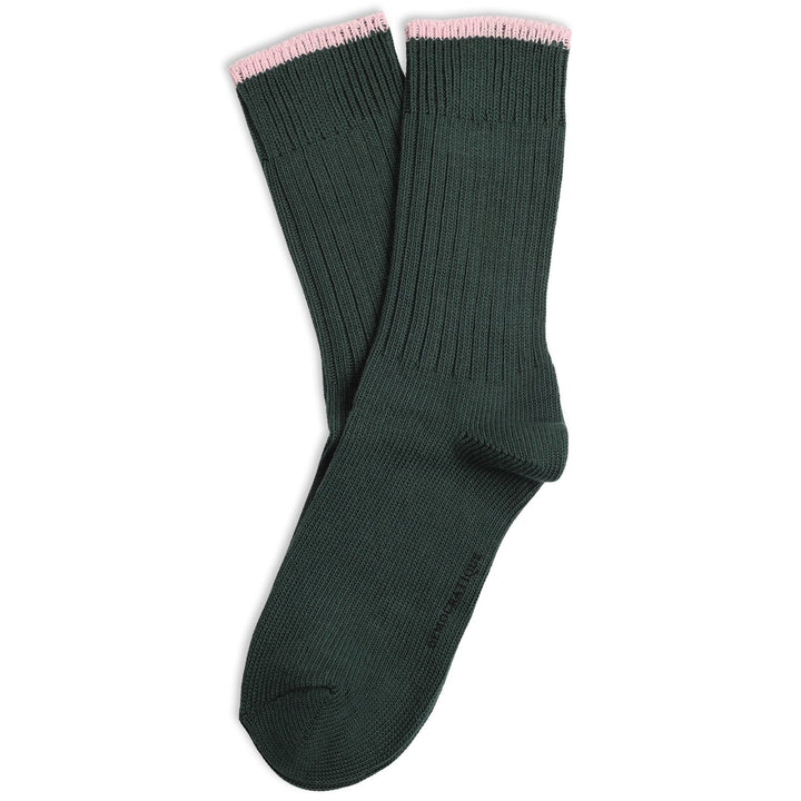 Immerse yourself in the unmatched texture and impeccable craftsmanship of Democratique Socks' Relax Chunky Rib style, embellished with high-quality knitting techniques and accent colors. Designed to provide warmth during winter's chill yet light enough for year-round wear, these Forrest Green / Cold Blossom Supermelange socks, meticulously crafted from organic cotton, emanate opulent quality and refined elegance.