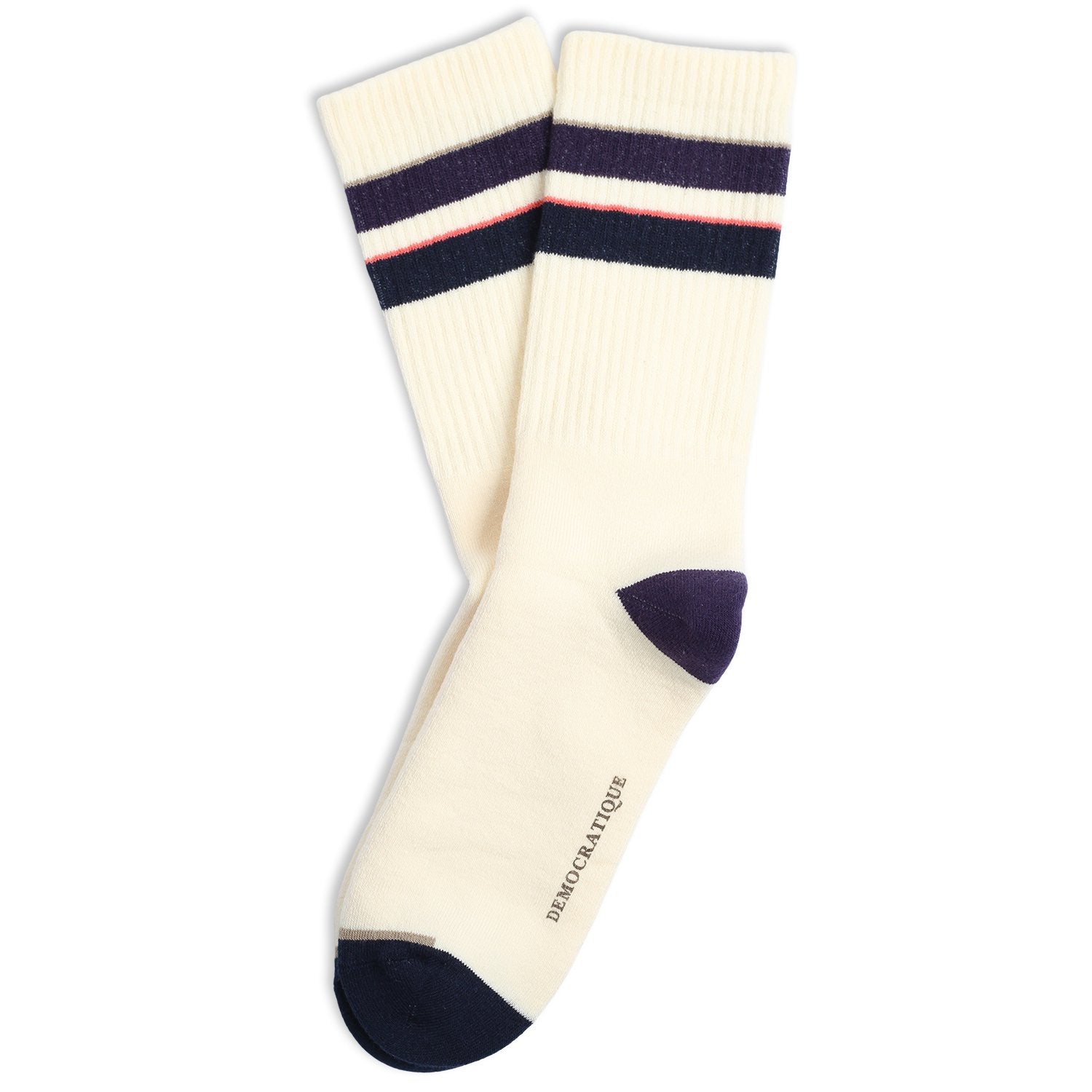 Achieve a winning style statement with Democratique Socks' iconic crew socks in Off White / Gribskov Plum / Navy. Meticulously crafted from organic cotton fabric and boasting a full terry foot, these socks provide unmatched comfort and timeless style. Marvel at the impeccable craftsmanship and proudly display your favorite socks on social media by tagging @democratiquesocks and using #democratiquesocks. Rest assured, you'll receive a guaranteed 'like' from us! Make every step a testament to both fashion and comfort.