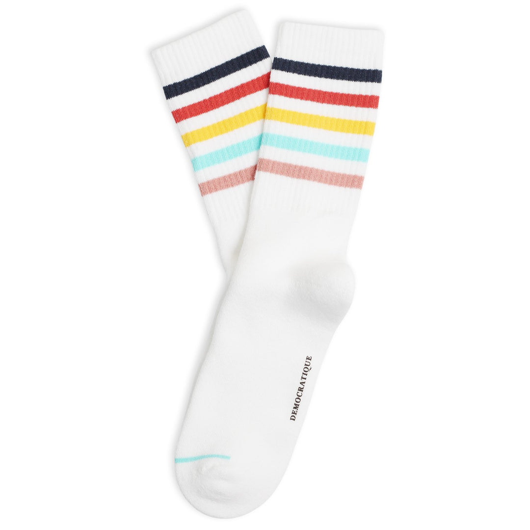 Athletique Classique Super Stripes Clear White / New Blue / Coral Lipstick / Mellow Yellow / Poolside Green / Pale Pink - Democratique Socks