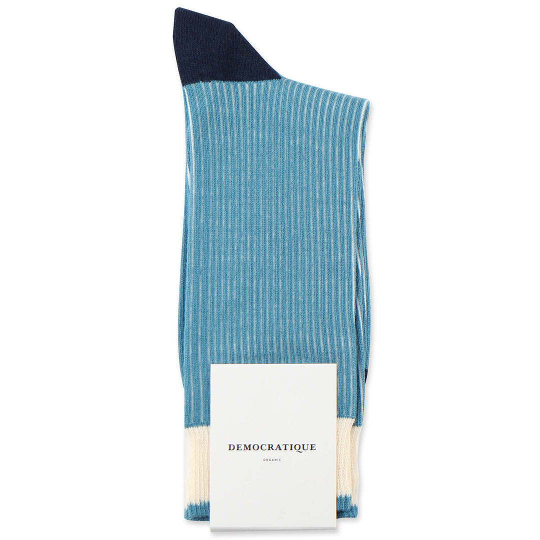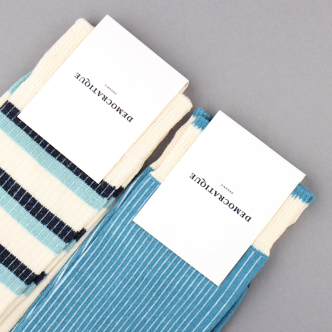 Democratique Socks Originals Full Latitude Stripes Organic Cotton Off White - Petroleum Blue - Navy - Democratique Socks
