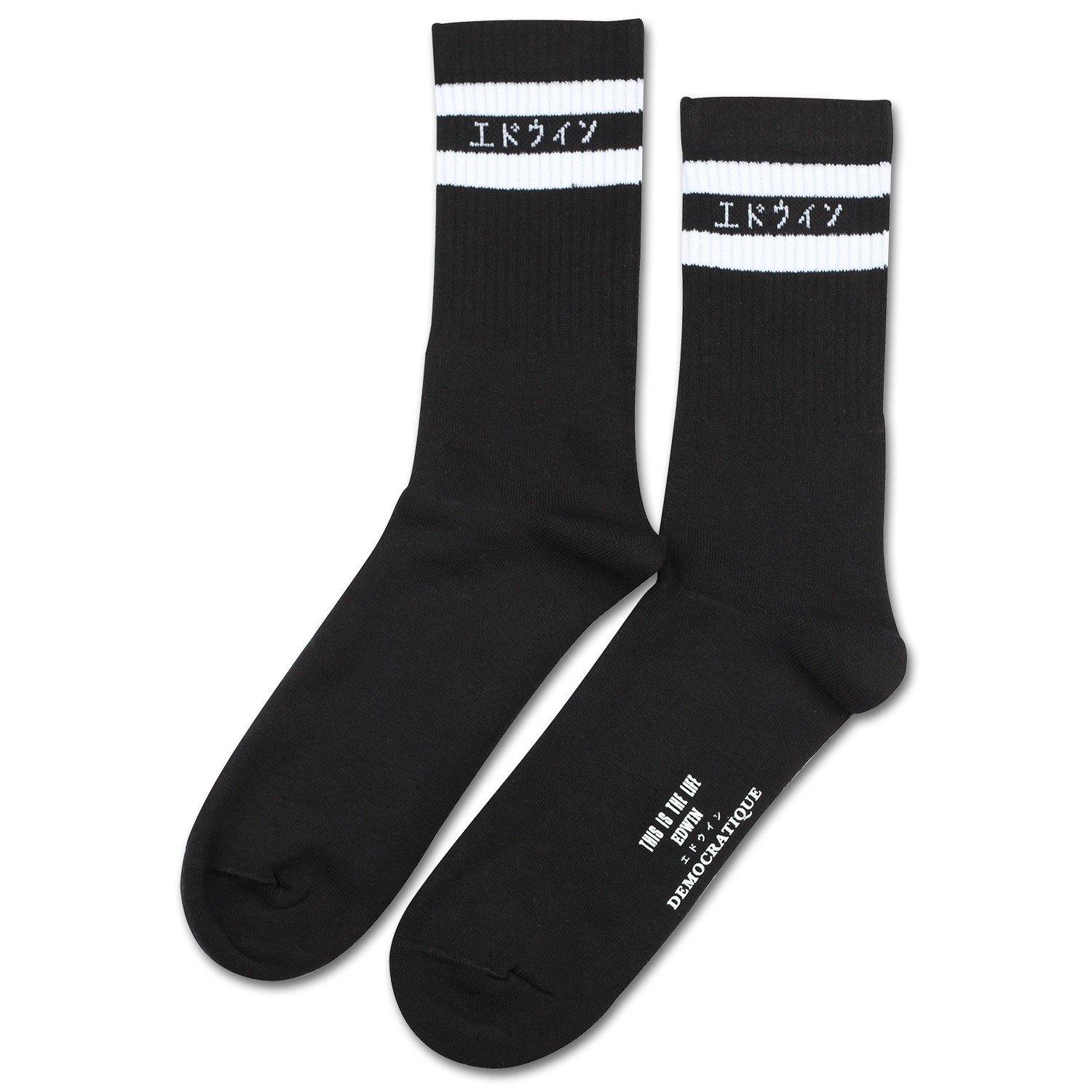 Edwin Jeans x Democratique Socks Athletique THIS IS THE LIFE Black / Clear White - Democratique Socks