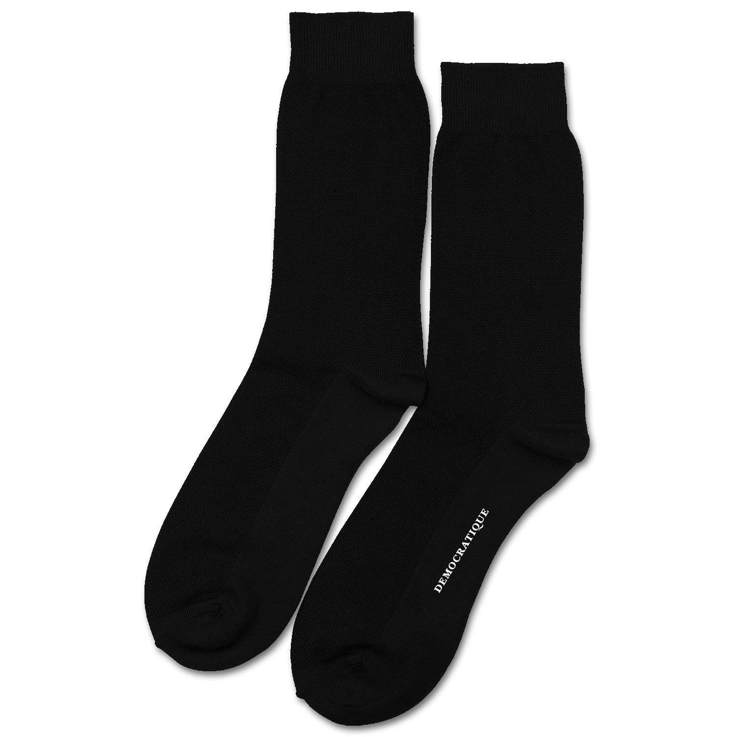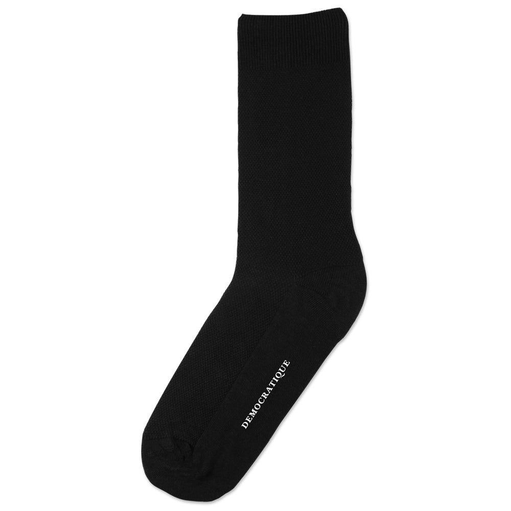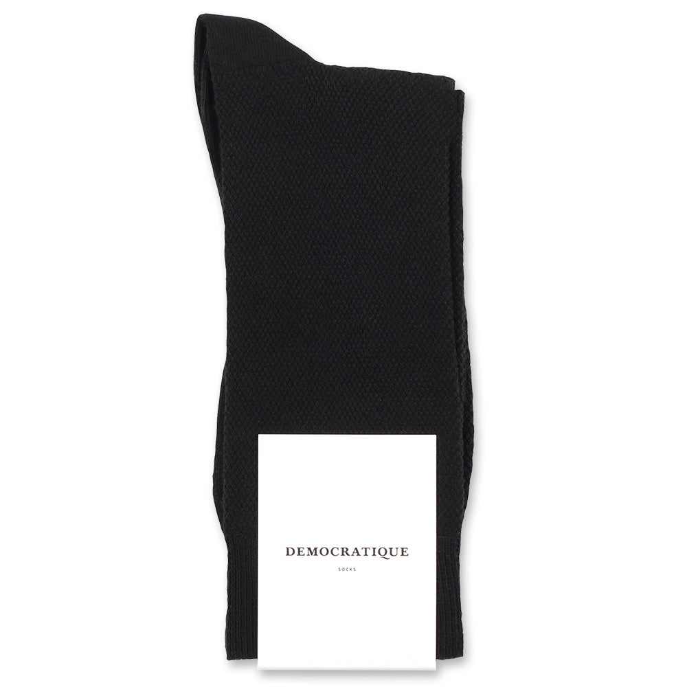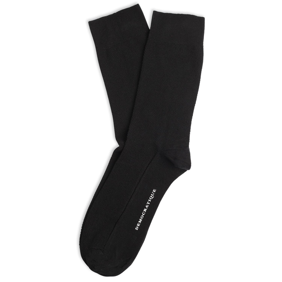 Our Originals in solid colors are unrivaled. These classic black pique socks feature an elegant and subdued solid color. Breathable and comfortable for any season and any day, these pique socks are of the highest quality, crafted in organic cotton with 168 needles and handlinked toes. Buy your pair of these timeless black pique socks from Democratique Socks and wear them with pride. You will be satisfied with their quality and craftsmanship. Don't forget to share your daily sock pics on Instagram and tag us with @democratiquesocks and #democratiquesocks — we guarantee a like in return! At Democratique Socks, we value feedback from our customers, so leave a review (positive or negative) and you may be the first to be featured on our website!