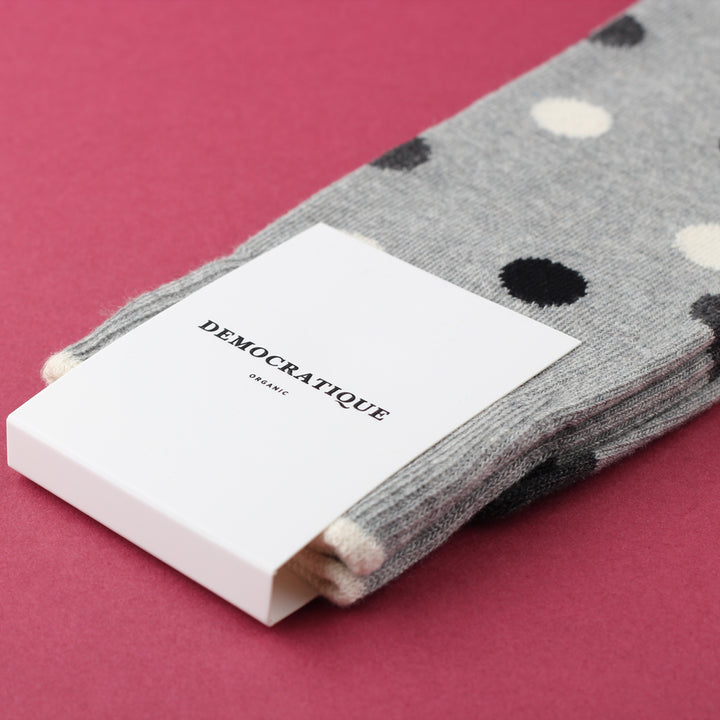 Buy these high quality grey, black and white dotted socks from Democratique Socks and wear them with pride. The joy will come for sure when you feel the quality and craftsmanship. Please share your everyday sock pictures on Instagram and tag us with @democratiquesocks and #democratiquesocks. That will be a 100% like from us.