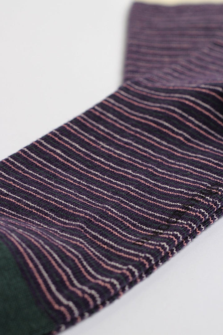 Crafted with exquisite organic cotton stripes, Democratique Socks Originals Ultralight Stripes in Gribskov Plum / Off White / Forest Green / Pale Pink offer unparalleled comfort and quality. Expertly crafted by one of the world's most adept teams, these socks add a refined splash of color to your ensemble. Setting a new benchmark for luxury and quality, they provide a snug fit and a sophisticated feel, perfect for pairing with any footwear, be it sneakers or dress shoes.