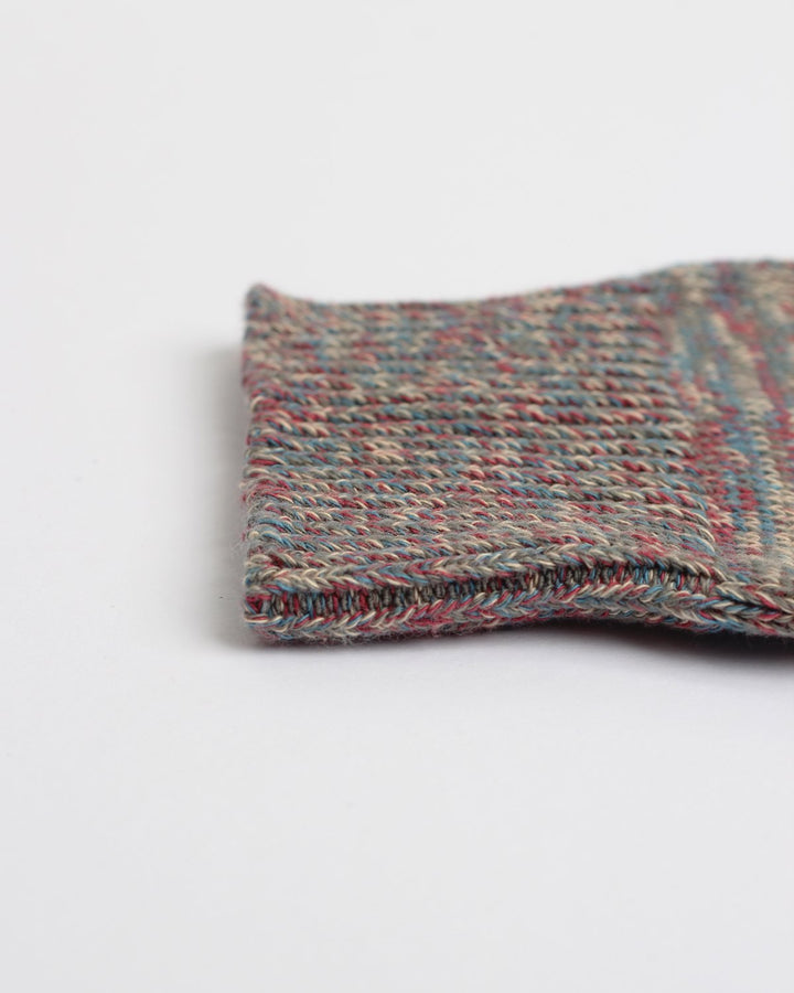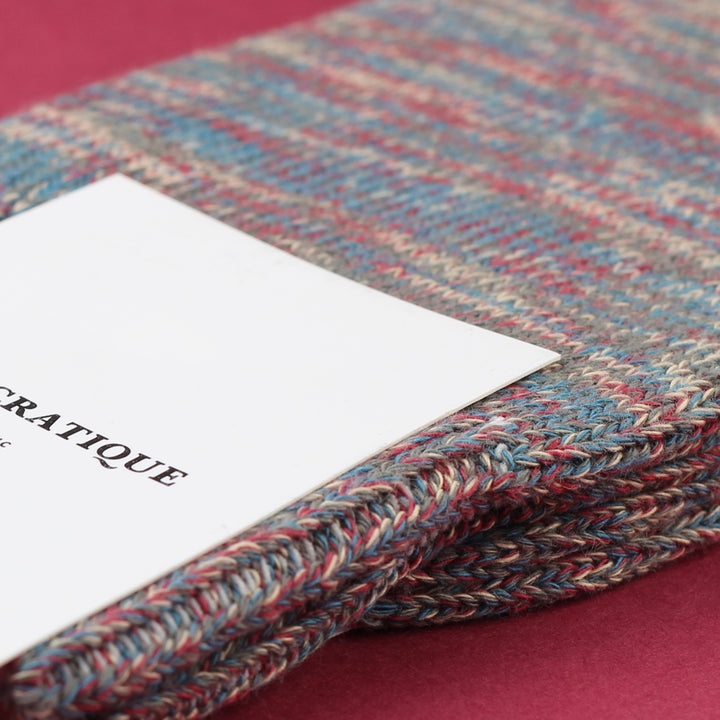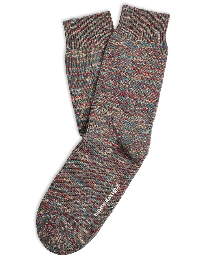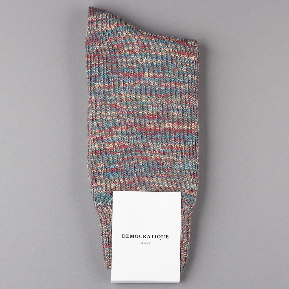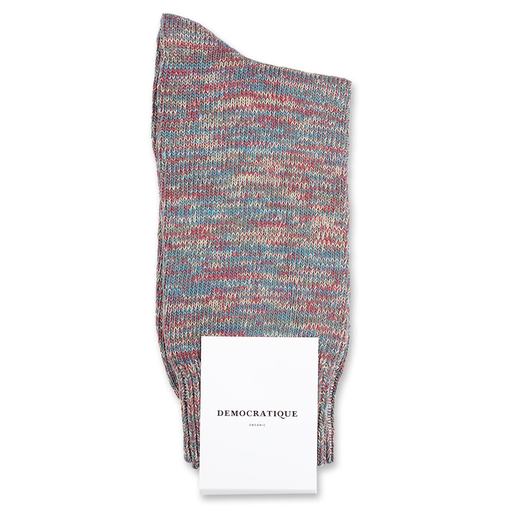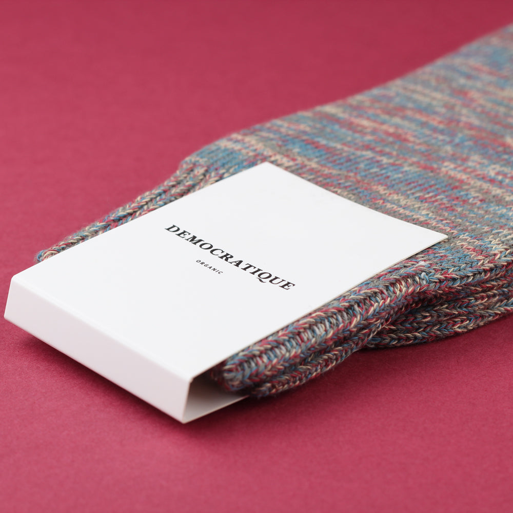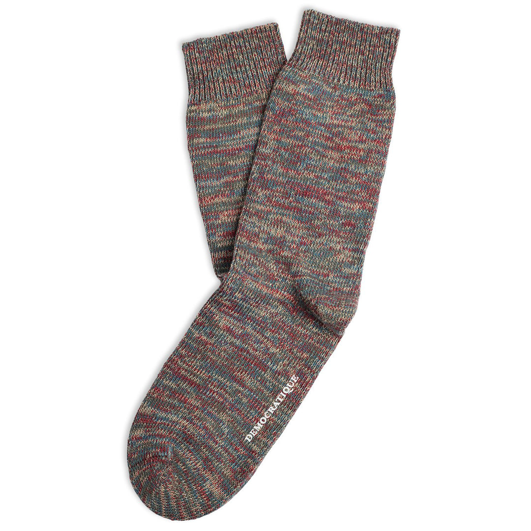 Democratique Socks Relax Chunky Flat Knit Supermelange Organic Cotton Army / Petroleum / Light Rosso / Light Orange - Democratique Socks
