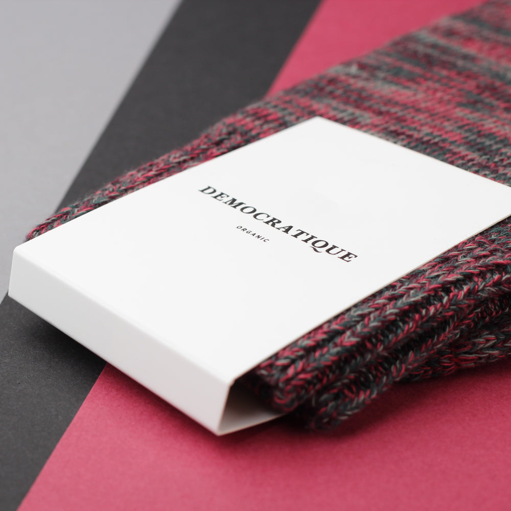 Get these unique green, red and army green twisted yarn supermelange socks in organic cotton from Democratique Socks and wear them with pride. The joy will come for sure when you feel the quality and craftsmanship. Please share your everyday sock pictures on Instagram and tag us with @democratiquesocks and #democratiquesocks. That will be a 100% like from us.