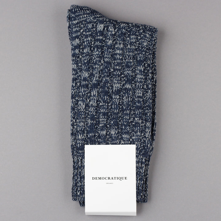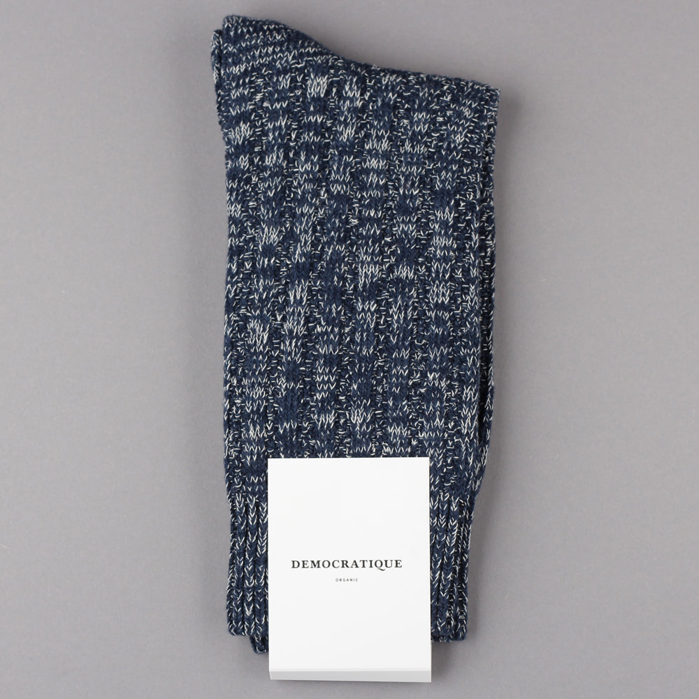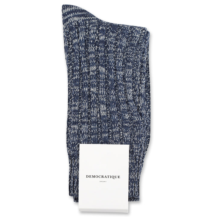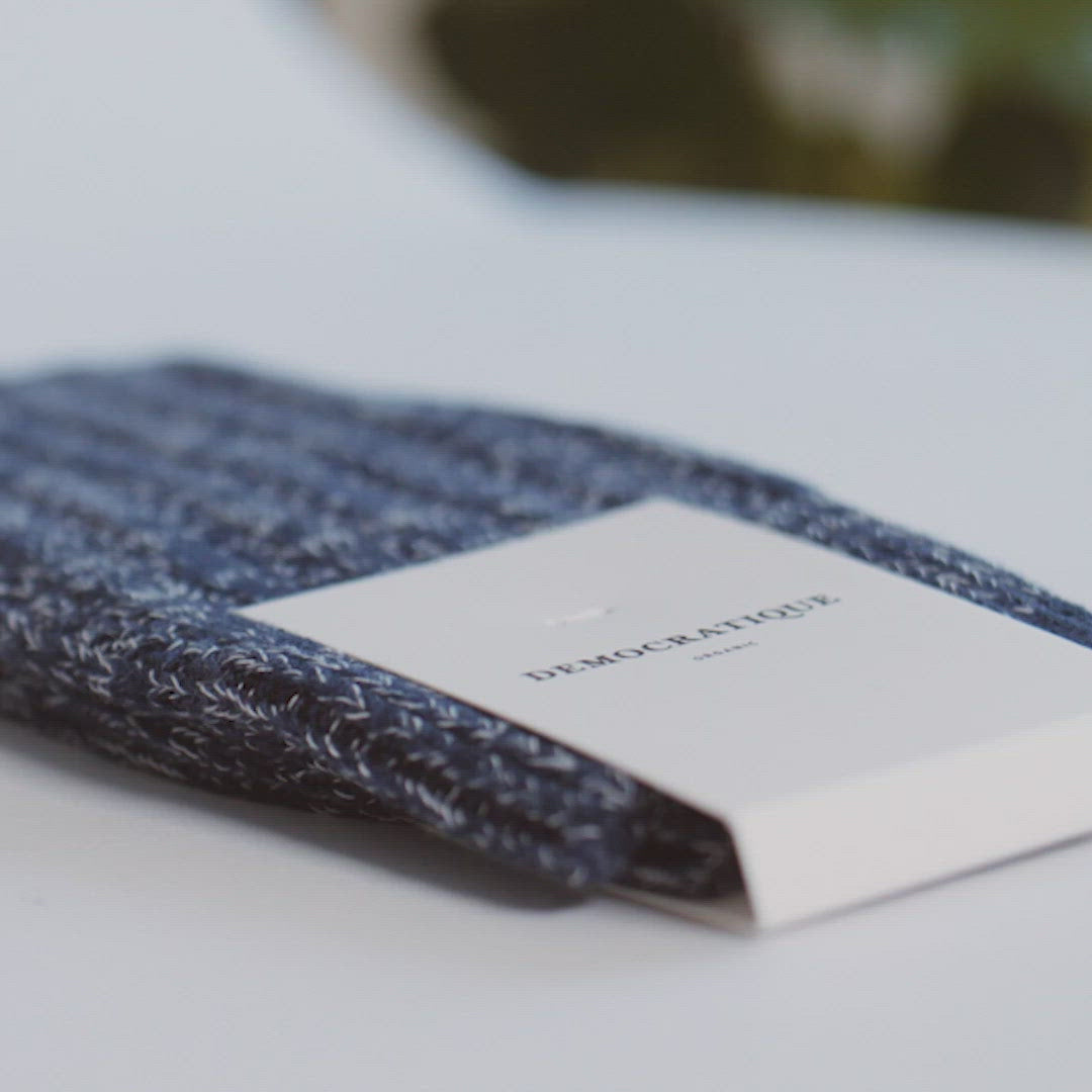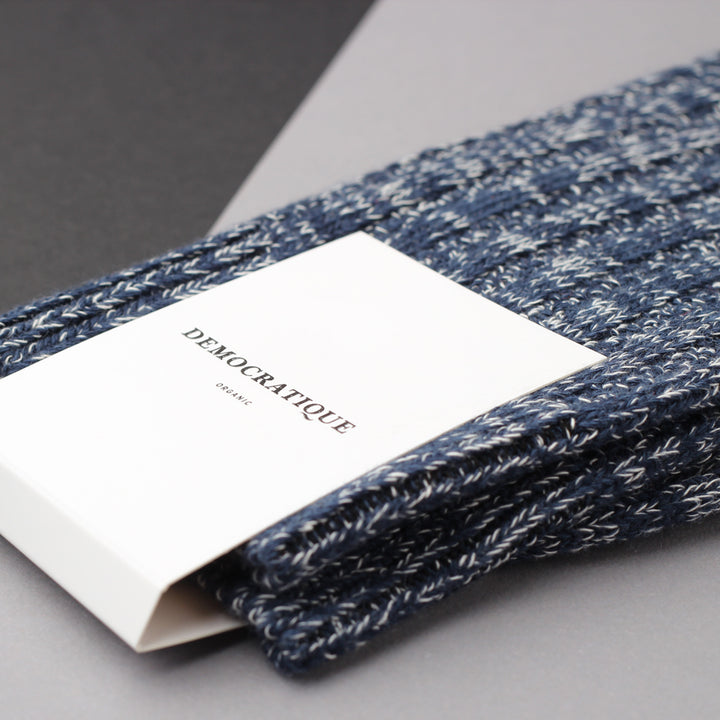 Get these unique navy blue and white twisted yarn supermelange socks in organic cotton from Democratique Socks and wear them with pride. The joy will come for sure when you feel the quality and craftsmanship. Please share your everyday sock pictures on Instagram and tag us with @democratiquesocks and #democratiquesocks. That will be a 100% like from us.