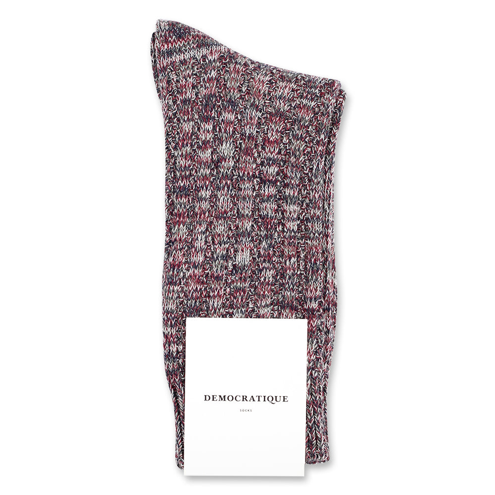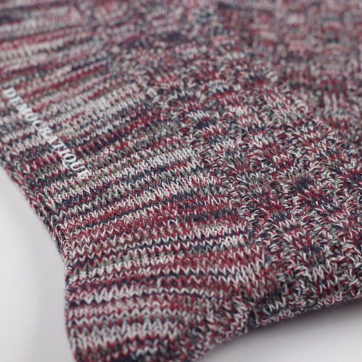 Get these unique bordeaux, army green, navy blue and white twisted yarn supermelange socks from Democratique Socks and wear them with pride. The joy will come for sure when you feel the quality and craftsmanship. Please share your everyday sock pictures on Instagram and tag us with @democratiquesocks and #democratiquesocks. That will be a 100% like from us.