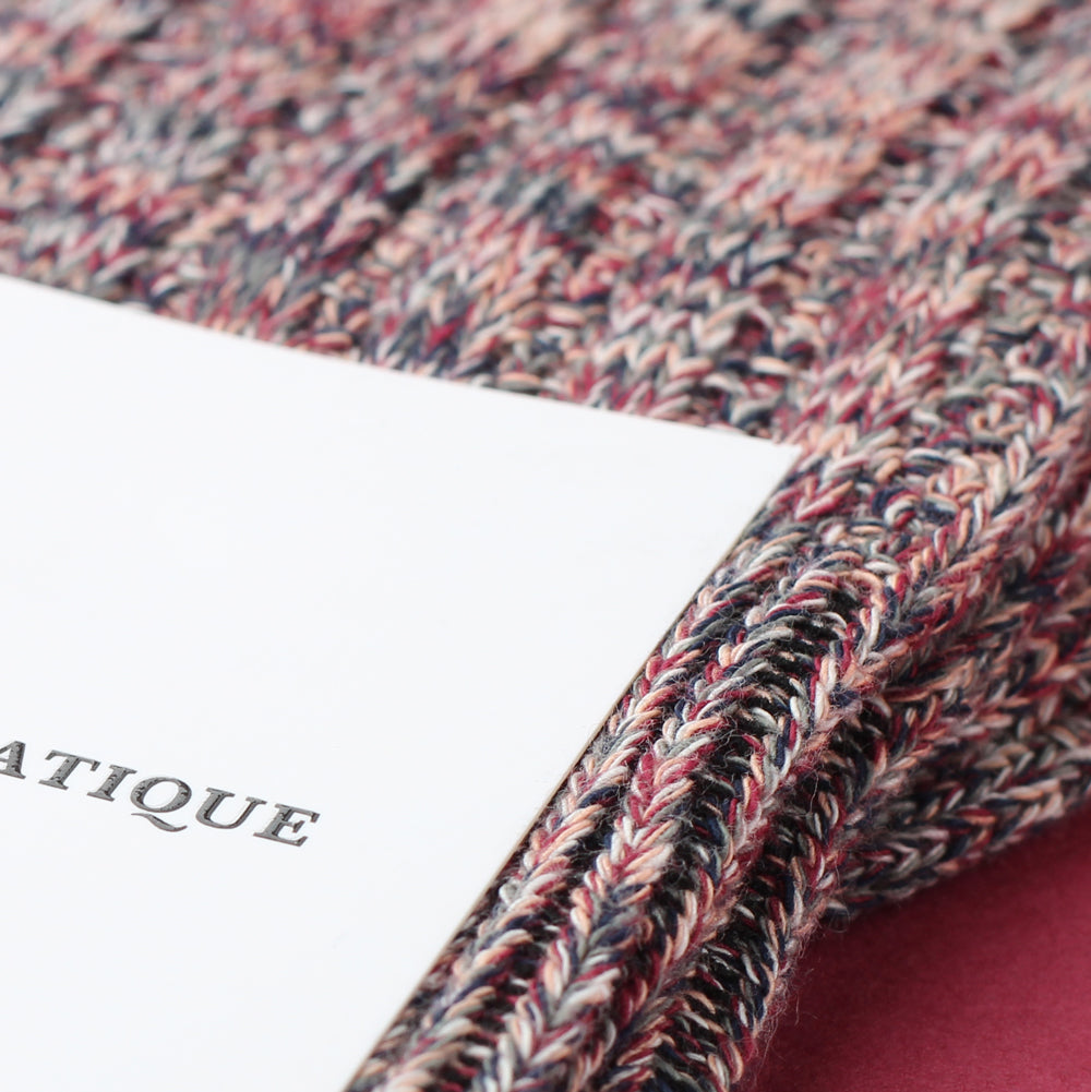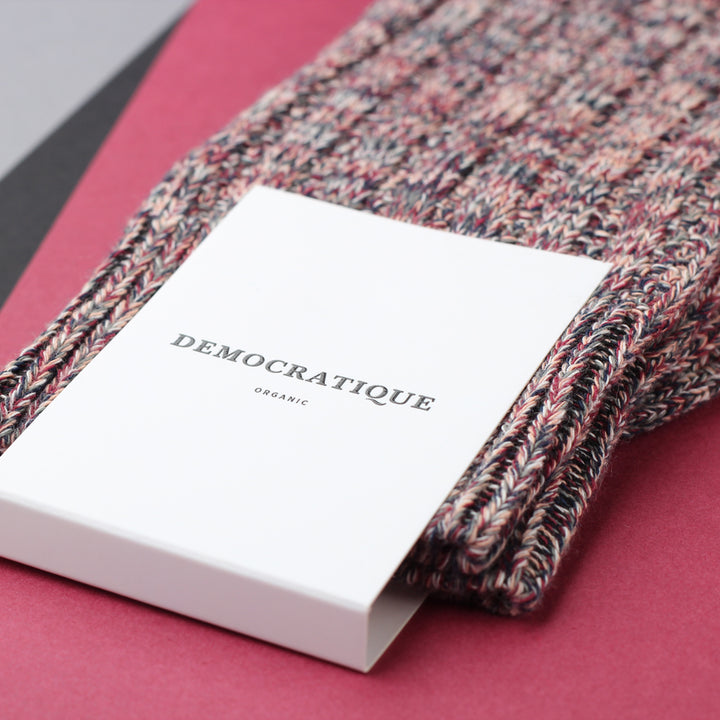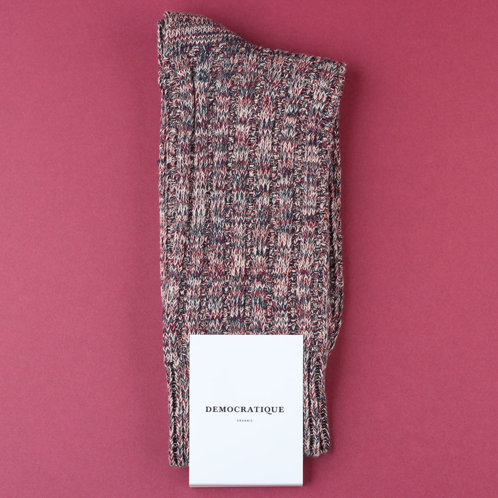 Democratique Socks Relax Schooner Knit Supermelange Organic Cotton Navy / Red Wine / Army / Light Salmon / Off White - Democratique Socks