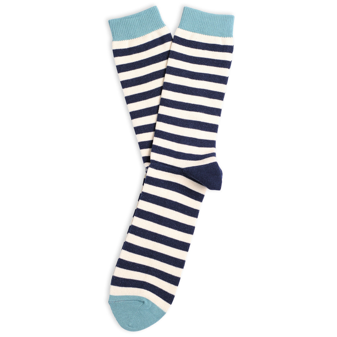 Immerse yourself in the unmatched texture and impeccable craftsmanship of Democratique Socks' Relax Ultralight Stripes style, embellished with high-quality knitting techniques and accent colors. Designed to provide warmth during winter's chill yet light enough for year-round wear, these Navy / Off White / Light Irr striped socks, meticulously crafted from high quality cotton, emanate opulent quality and refined elegance.